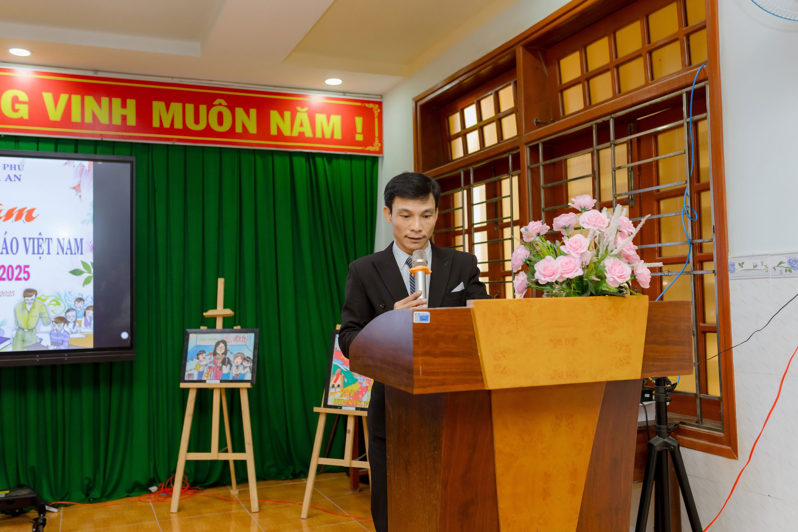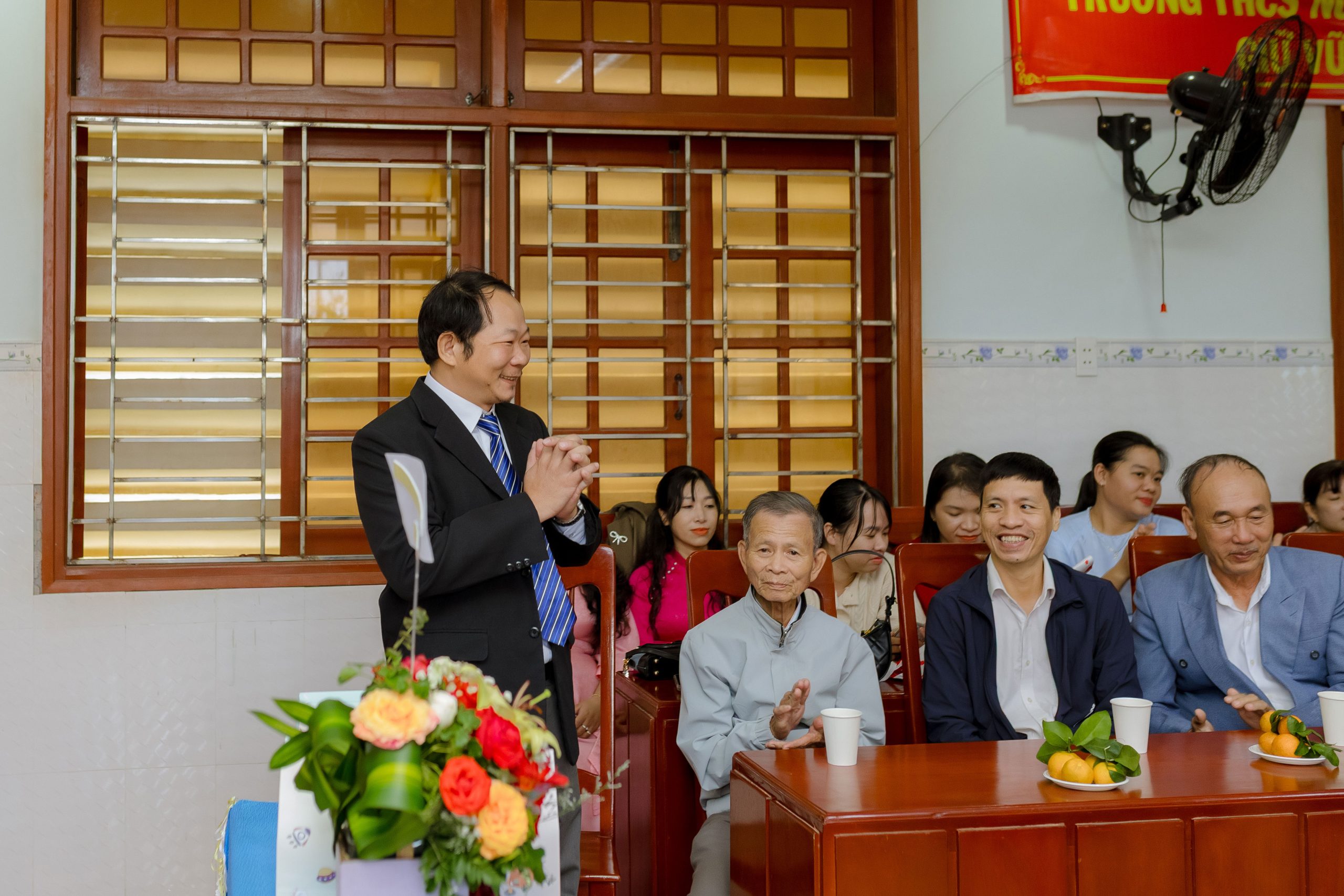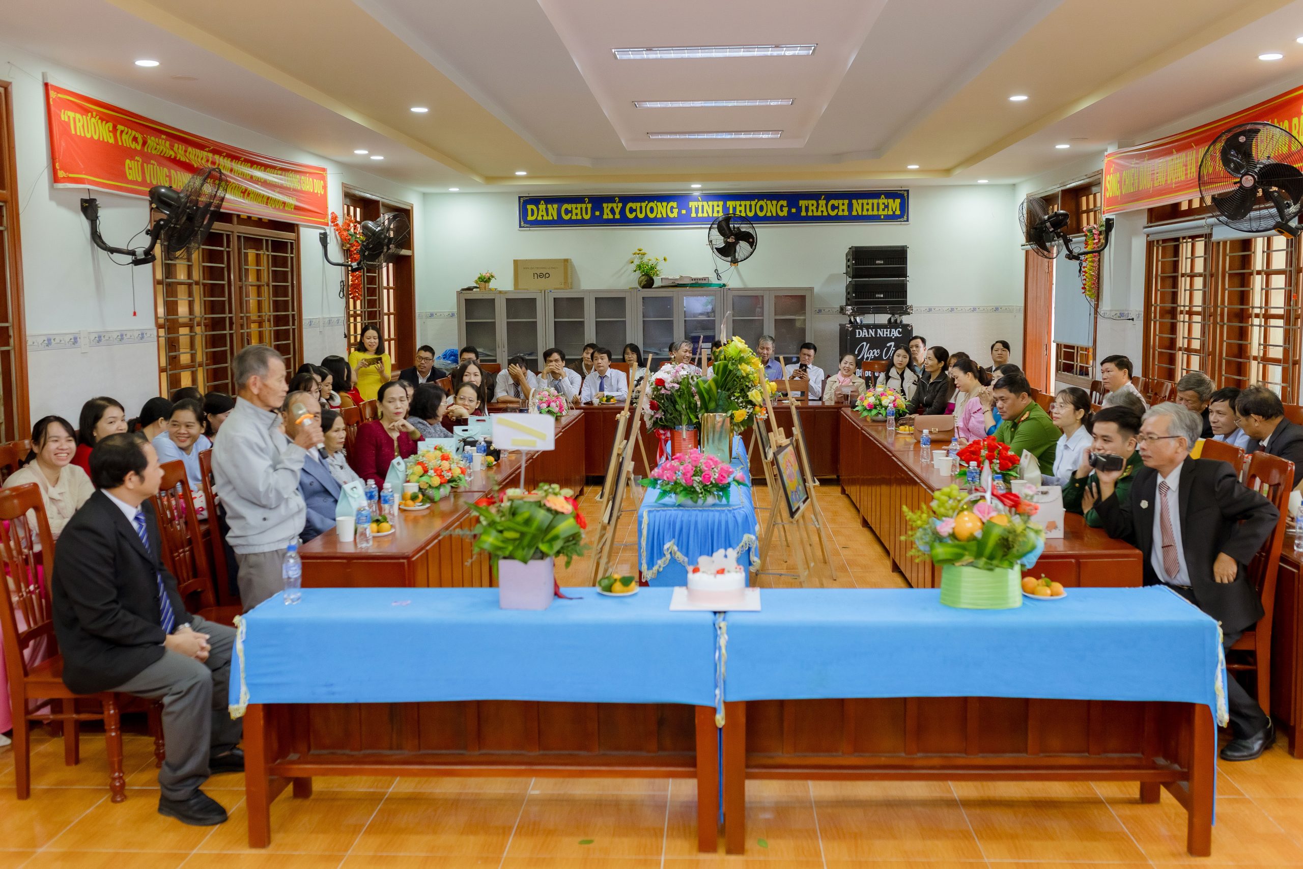 Sáng ngày 20/11/2025 Trường THCS Nghĩa An tổ chức Tọa đàm kỷ niệm 43 năm ngày Nhà giáo Việt Nam (20/11/1982 – 20/11/2025). Mặc dù thời tiết không thuận lợi nhưng đại biểu, thầy cô giáo đều có mặt đông đủ, đặc biệt là các thầy cô nguyên là cán bộ quản lý, giáo viên đã nghỉ hưu vẫn cố gắng về chung vui tạo nên bầu không khí ấm áp, thân tình. Tại buổi tọa đàm, thầy Lý Thanh Hận – Phó Hiệu trưởng nhà trường ôn lại truyền thống ngày 20/11, thầy Kiều Quang Quy – Phó Hiệu trưởng phụ trách thay mặt tập thể nhà trường ghi nhận và cảm ơn sự quan tâm của lãnh đạo địa phương, của các tập thể, cá nhân, của quý thầy cô giáo đã gửi những lẵng hoa tươi thắm, những món quà tinh thần và vật chất đến thầy cô của trường. Đồng thời thầy Kiều Quang Quy cũng thay mặt nhà trường tặng những món quà nhỏ thay lời tri ân đến các thế hệ thầy cô đã nghỉ hưu. Một số hình ảnh ấm áp của thầy cô trong ngày 20/11/2025