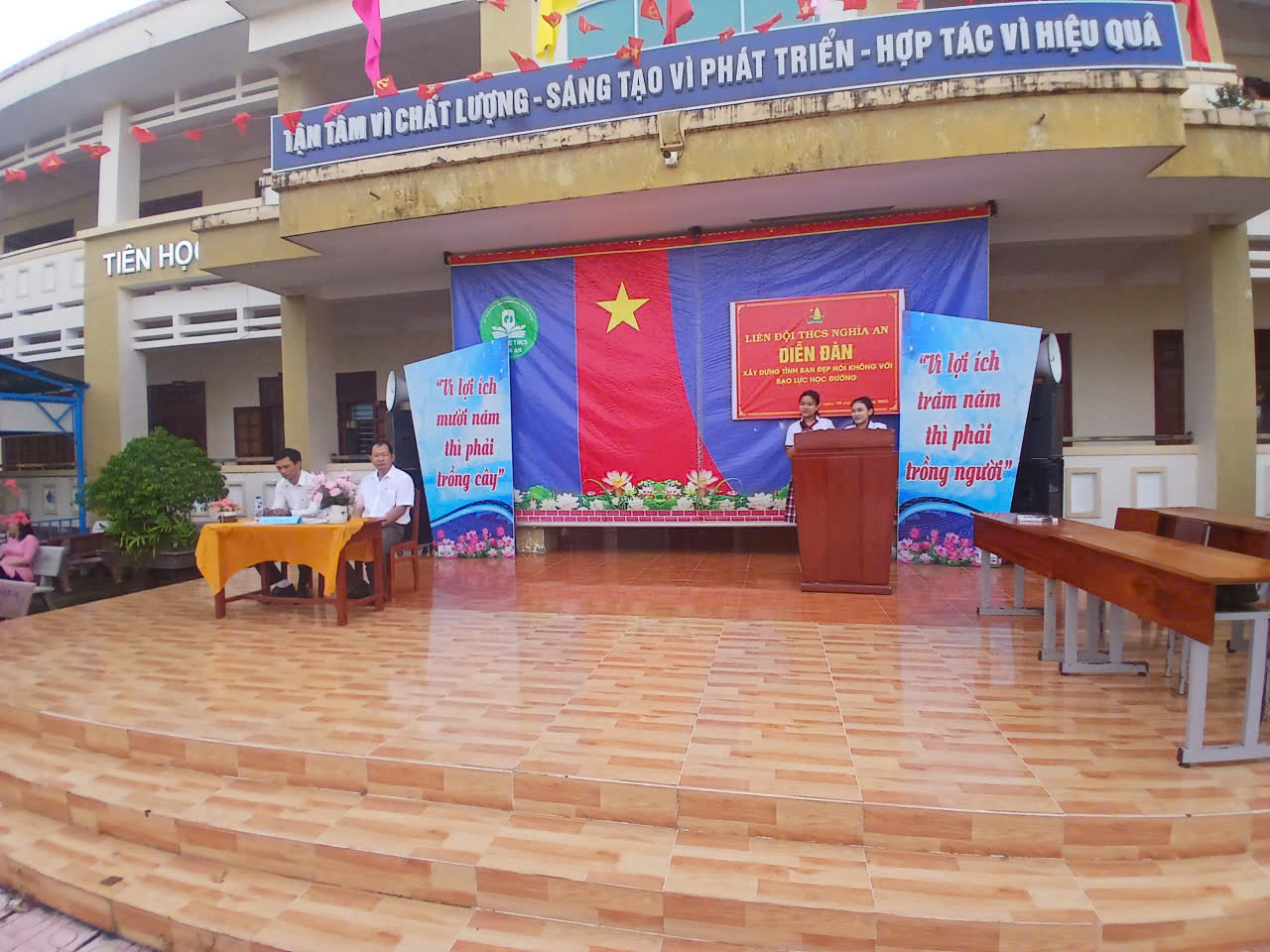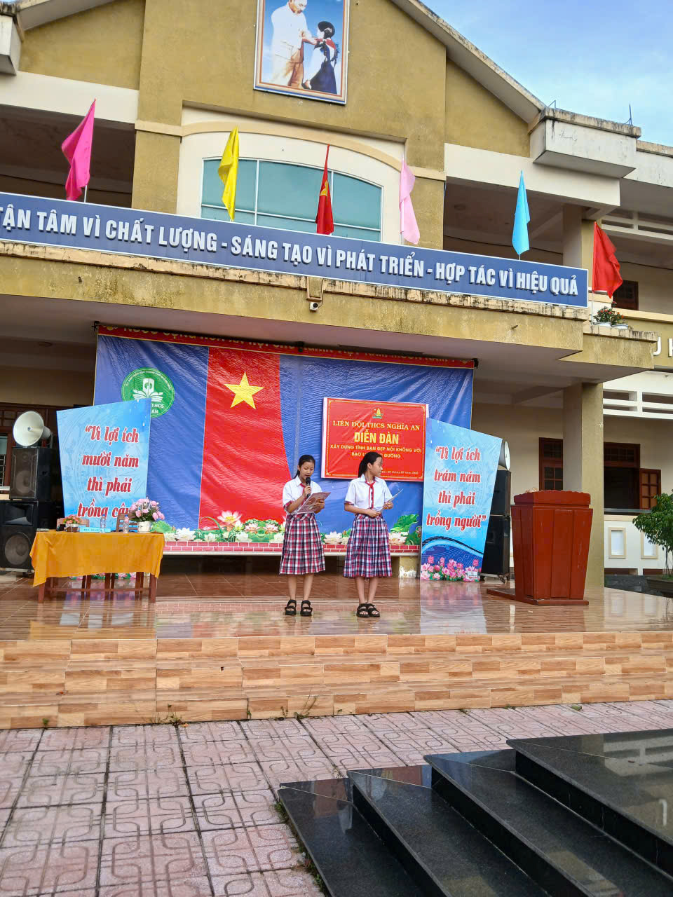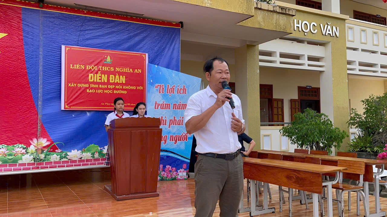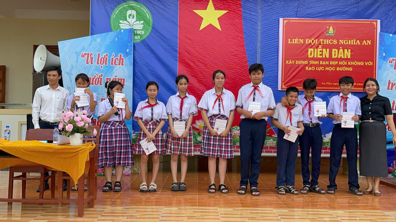 Sáng và chiều ngày 29 tháng 9 năm 2025, tại giờ sinh hoạt dưới cờ ngoài trời, Liên đội THCS Nghĩa An đã tổ chức Diễn đàn “Xây dựng tình bạn đẹp – Nói không với bạo lực học đường”. Đây là hoạt động thiết thực nhằm tạo môi trường học đường thân thiện, an toàn và gắn kết.